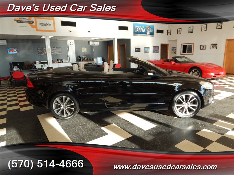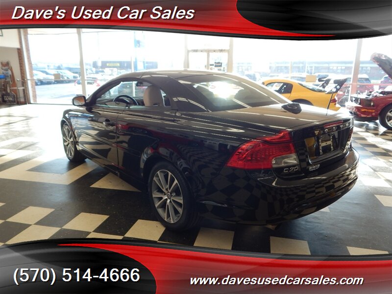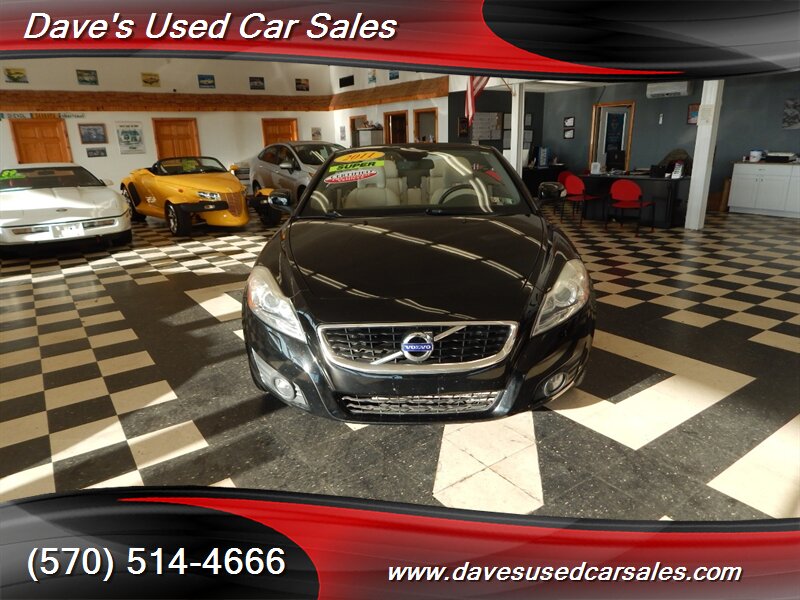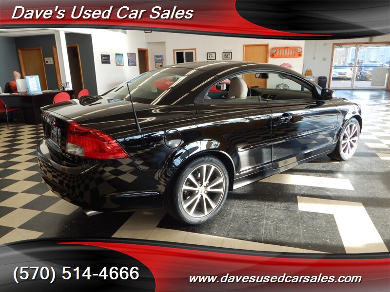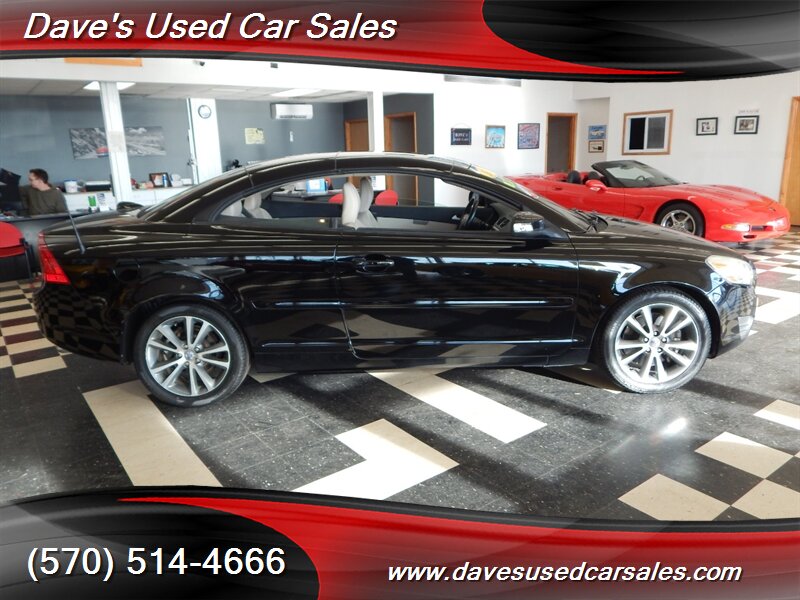 The exterior of the 2011 Volvo C70 T5 is finished in Solid Black, which exudes sophistication and elegance. The glossy original paint is in excellent condition, free from any dents or rust, reflecting the care it has received over the years. The sleek lines and classic convertible silhouette are complemented by stylish alloy wheels, enhancing its visual appeal.
