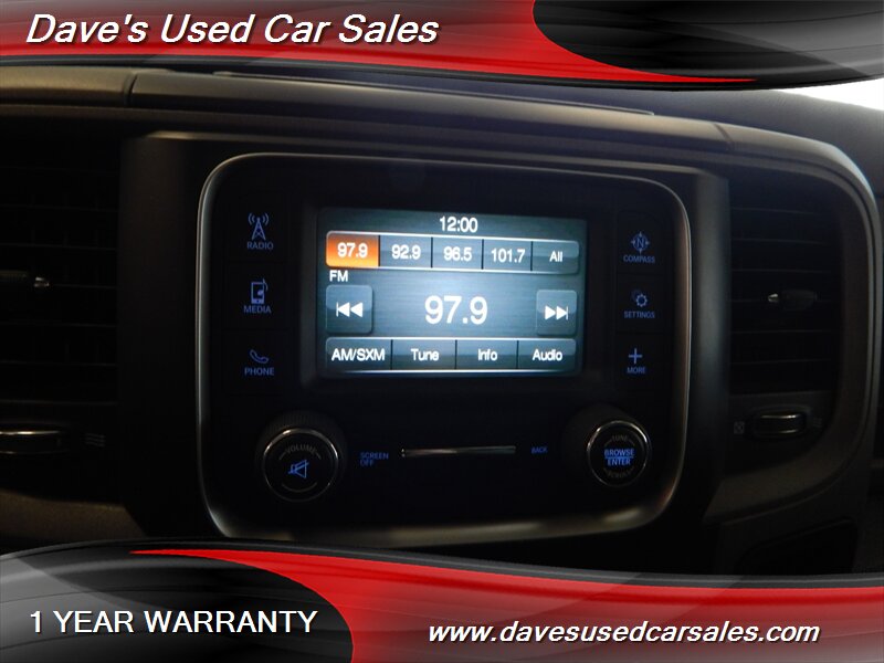 - Infotainment and connectivity: factory Uconnect infotainment offerings with AM/FM audio, Bluetooth hands-free calling and audio streaming, and steering-wheel controls for safer operation while driving (features dependent on the Express Value/Quick Order package configuration installed at the factory).