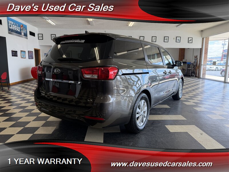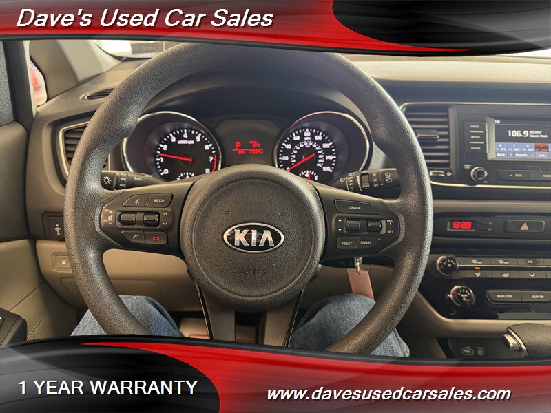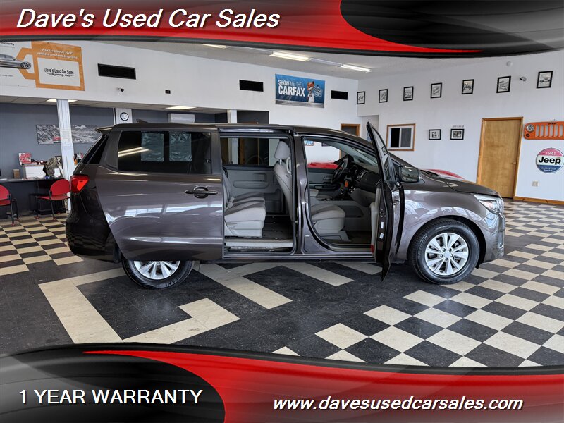This 2018 Kia Sedona LX is powered by the factory 3.3L V6 (276 hp / 248 lb-ft) paired with an automatic transmission and front-wheel drive. It has under 77,000 miles (averaging less than 9,000 miles per year) and returns EPA-rated fuel economy of about 18 MPG city / 24 MPG highway. The vehicle is in excellent overall condition with glossy paint, has been fully detailed, has never been smoked in, was inspected by the dealer, and has a clean CARFAX report.