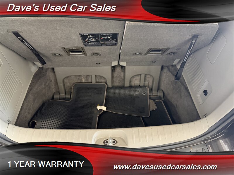 - Safety and security: A full complement of standard passive and active safety equipment, including front and side airbags, side-curtain airbags for all three rows, anti-lock brakes (ABS), electronic stability control and traction control, tire pressure monitoring system (TPMS), and LATCH anchors for child-seat installation.
