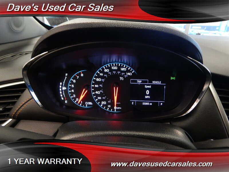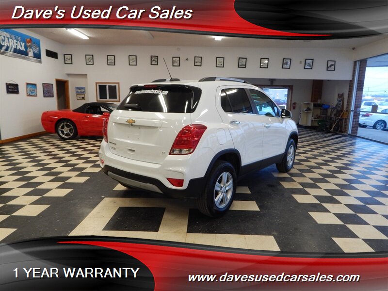 2019 Chevrolet Trax LT — Summit White exterior, Jet Black interior. Powered by the Ecotec 1.4L Turbo I4 (138 hp / 148 ft-lbs) paired with a 6-speed automatic transmission. This Trax has excellent mileage with under 56,000 miles (averaging less than 7,000 miles per year) and EPA-rated fuel economy of 24 MPG city / 29 MPG highway.