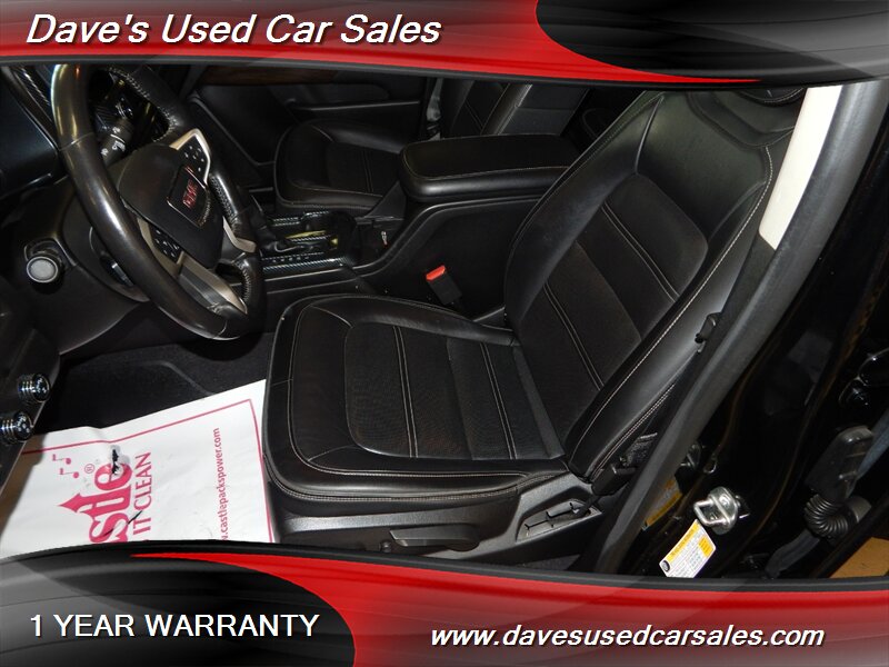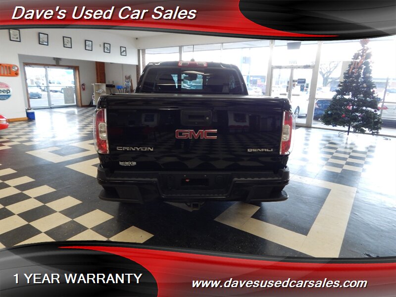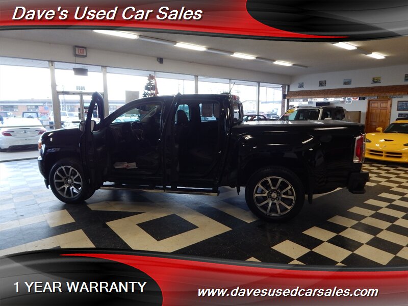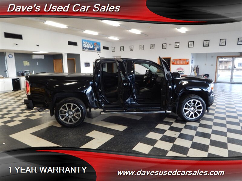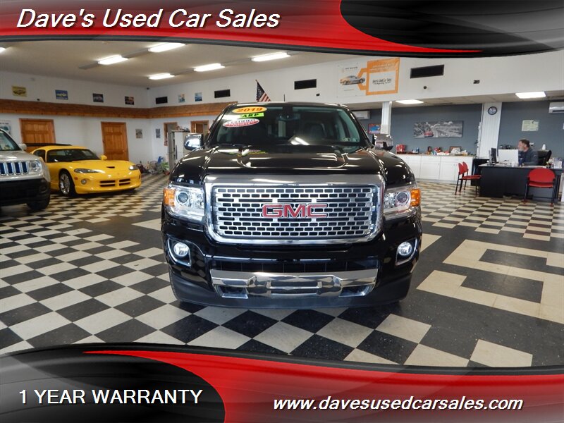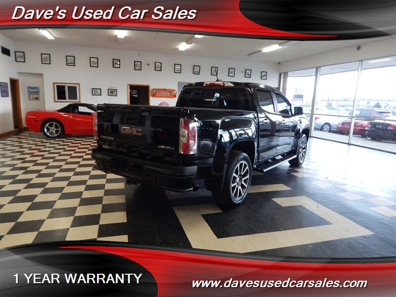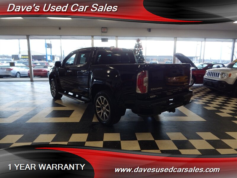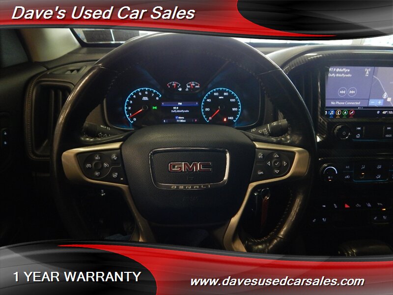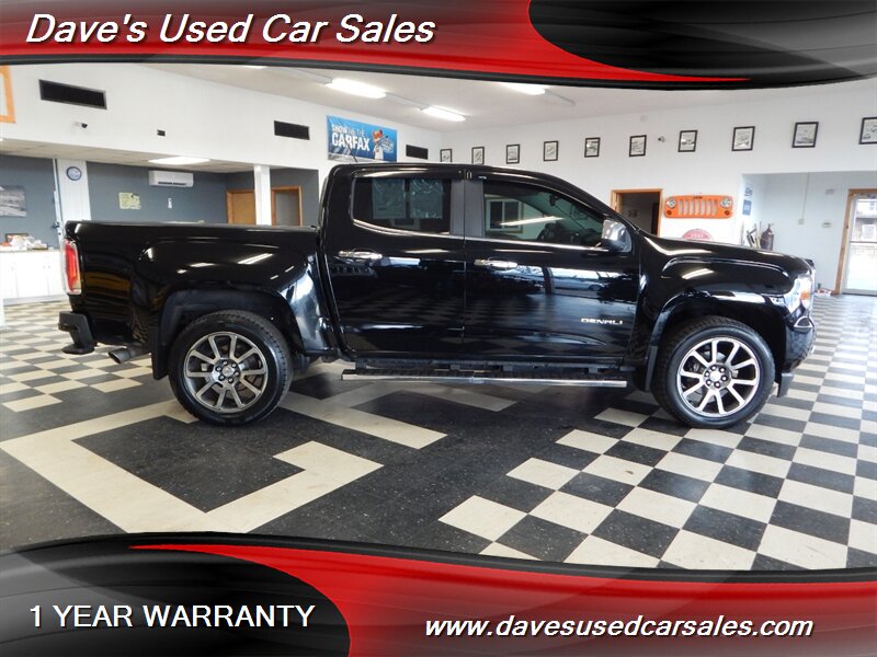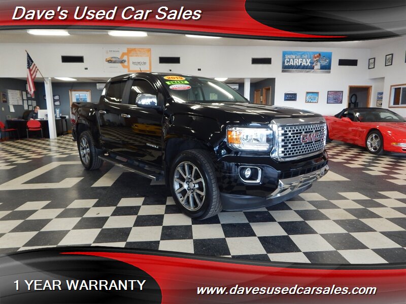 2019 GMC Canyon Denali — Onyx Black exterior, Jet Black interior. This Canyon is powered by the factory 3.6L V6 mated to an 8-speed automatic transmission and presents in excellent overall condition with glossy paint and a recent full professional detail. It has been dealer inspected and has never been smoked in. Current mileage is below 72,000 miles (averaging under 9,000 miles per year). EPA fuel economy is approximately 17 MPG city and 24 MPG highway.