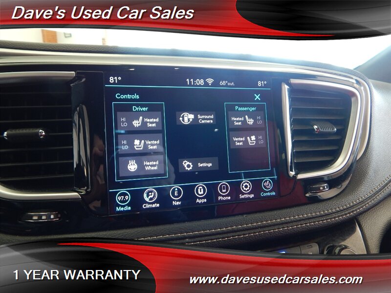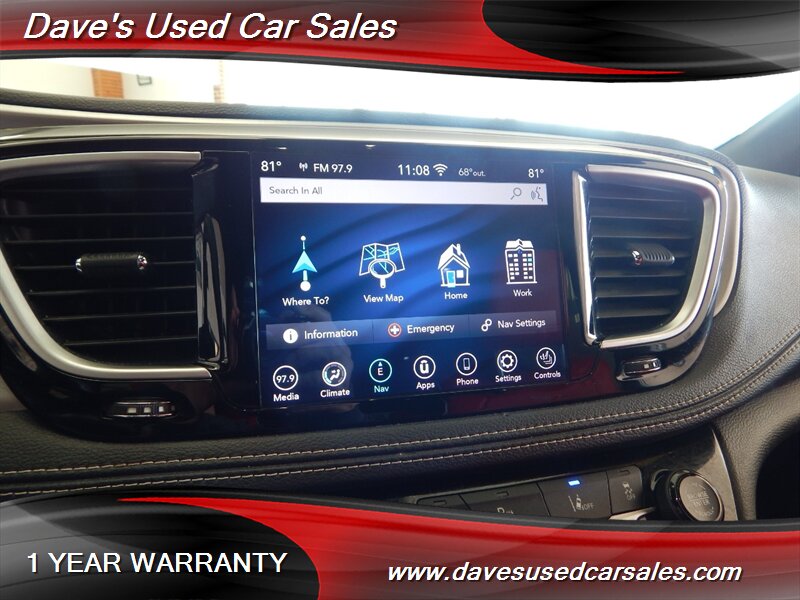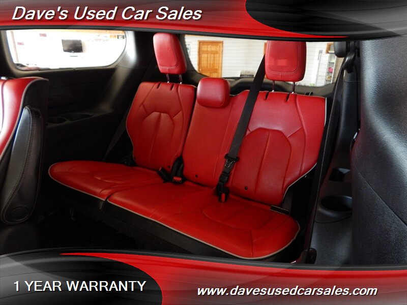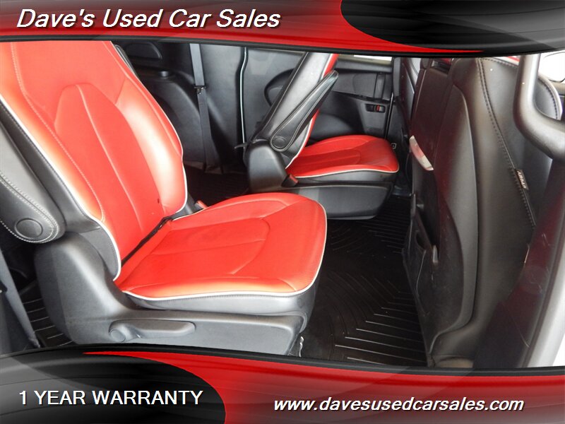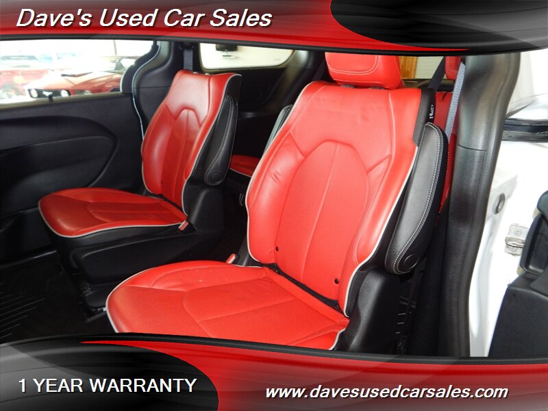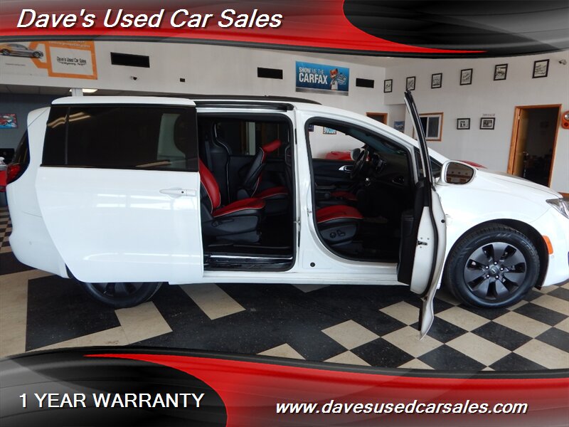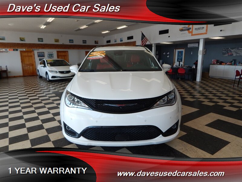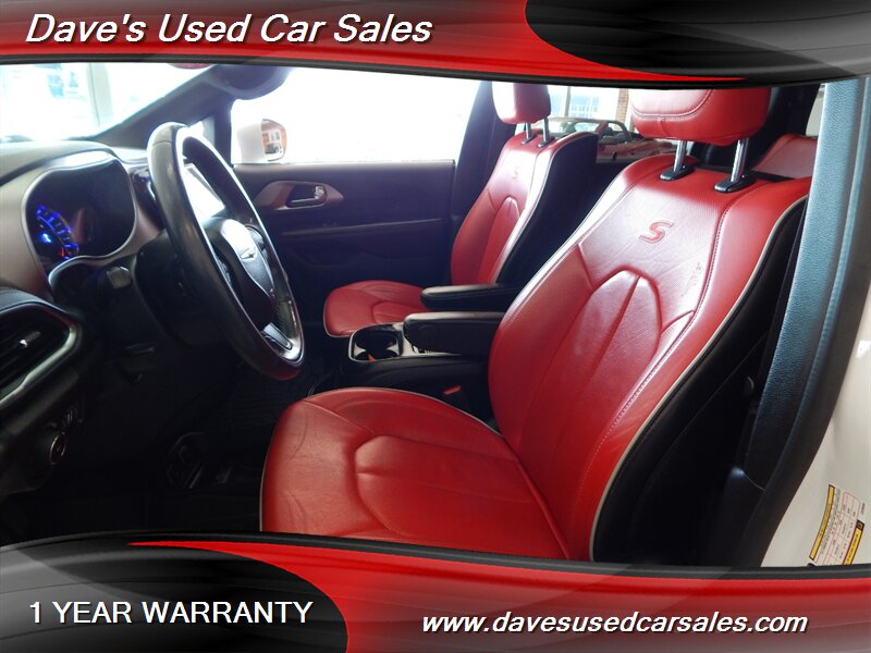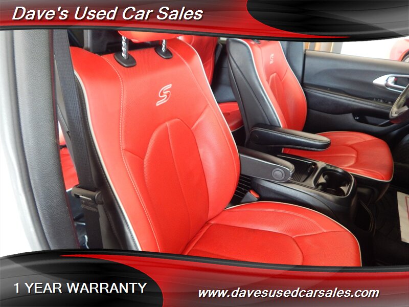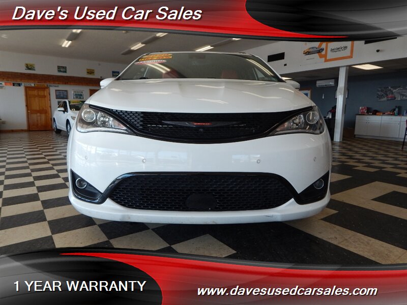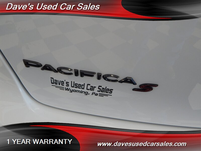 - This Pacifica is equipped with the S Appearance Package, which brings a sportier, more contemporary look to the van’s exterior and interior trim. The package includes blacked-out trim and S-specific visual cues that emphasize a more aggressive presence while maintaining the practical silhouette of the Pacifica. Exterior accents and grille treatments are finished to complement the bright white paint for a modern, high-contrast appearance.
