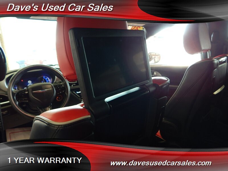 - Uconnect Theater PackageIncludes 115-volt auxiliary power outlet, Blu-ray/DVD player/USB port, high-definition multimedia interface, 10-in. seatback video screens, three-channel video remote control, third-row USB charge port and video USB port, and three-channel wireless headphones.