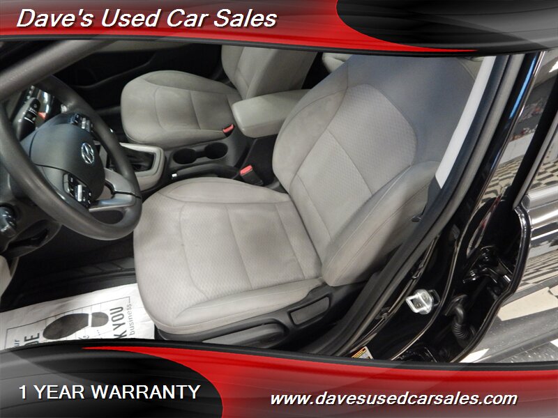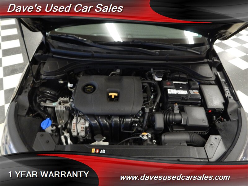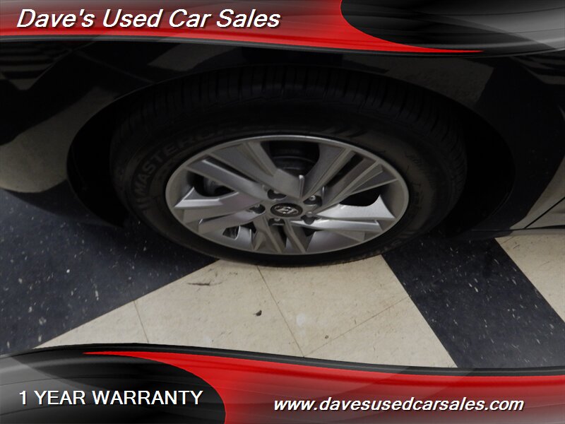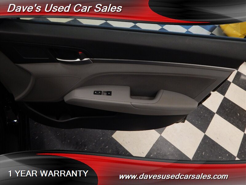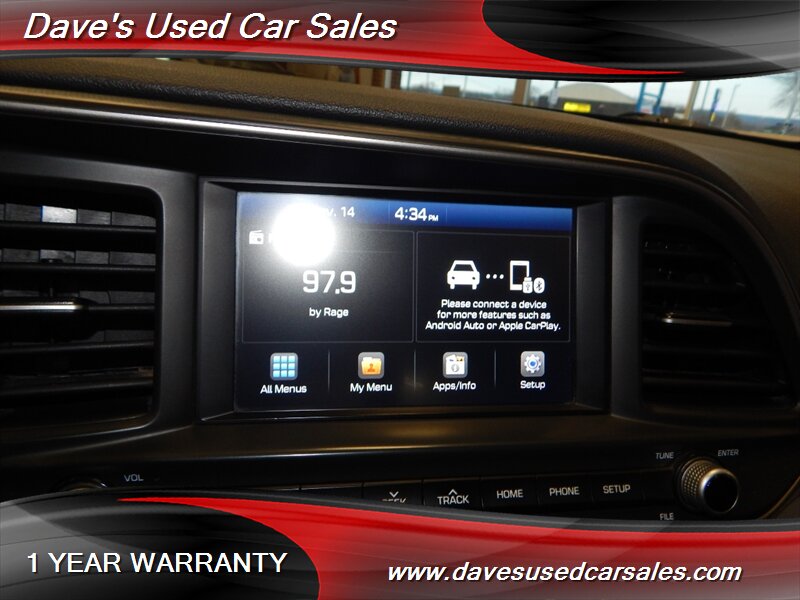 The exterior of this Elantra is dressed in a sophisticated Phantom Black, a color that exudes elegance and style. The glossy finish not only enhances the vehicle's aesthetic appeal but also reflects the care it has received, as this vehicle has been fully detailed to maintain its pristine appearance. The streamlined silhouette of the Elantra is complemented by a bold front grille and striking LED daytime running lights, giving it a confident stance on the road. The sleek design is further accentuated by 16-inch alloy wheels, which not only contribute to the vehicle's sporty look but also ensure a smooth ride quality.