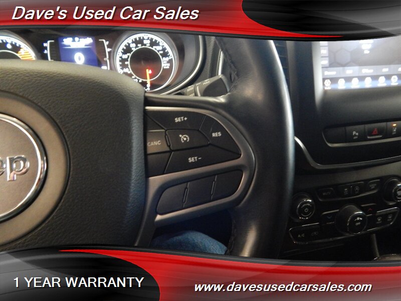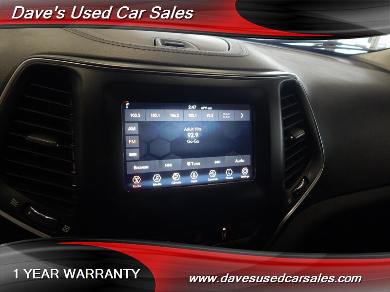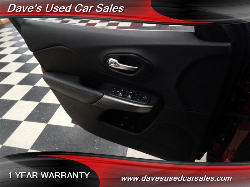 This Cherokee Latitude Lux offers a comfortable, well-equipped package with a strong V6 powerplant, attractive Velvet Red Pearl Coat finish, and a clean ownership and service presentation. Contact us for availability or to schedule a test drive!