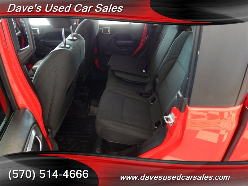 In terms of aesthetics, this 2021 Jeep Gladiator Sport S is finished in a striking Firecracker Red Clear Coat exterior paint, which not only adds a pop of color but also enhances the overall appeal of the vehicle. The addition of the Spray In Bedliner ensures that the truck bed is protected from wear and tear, while the 17 x 7.5-in. Black Aluminum Wheels add a touch of sportiness to the exterior design.