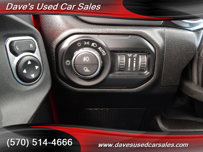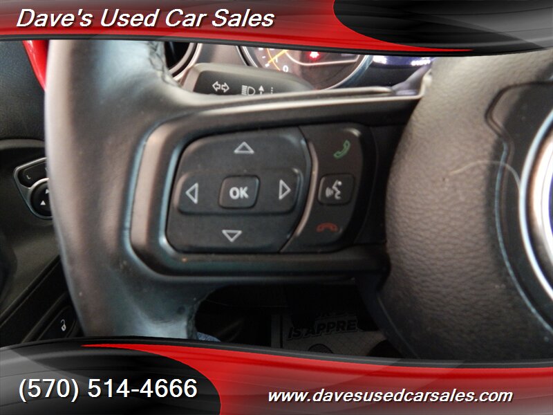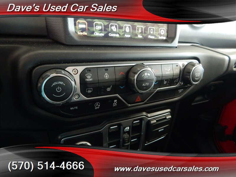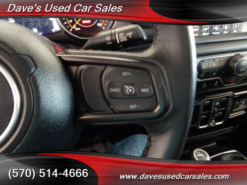 - Popular Equipment PackageIncludes SiriusXM satellite radio, UConnect 4 with 7.0-in. touch-screen display, Apple CarPlay and Google Android Auto, integrated center stack radio, 7.0-in. instrument display, air conditioning with automatic temperature control, remote start system, universal garage door opener, GPS antenna input, black 3-piece hard top with freedom panel storage bag, rear sliding window, rear window defroster, Class IV receiver hitch, heavy-duty engine cooling, trailer hitch zoom, and 240-amp alternator.