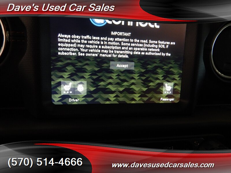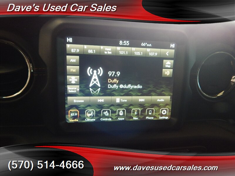 - Infotainment and connectivity: Uconnect infotainment system with a large center touchscreen, integrated navigation, Apple CarPlay and Android Auto compatibility, Bluetooth hands-free calling and audio streaming, and multiple USB ports for device charging and connectivity.