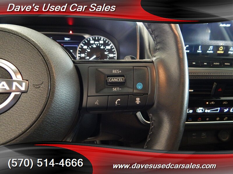 With less than 23,000 miles on the odometer, averaging less than 8,000 miles per year, this Rogue SL has been gently driven and meticulously maintained. Boasting impressive fuel efficiency ratings of 28 MPG in the city and 34 MPG on the highway, this SUV is as economical as it is enjoyable to drive, making it an ideal choice for both urban commutes and long road trips.