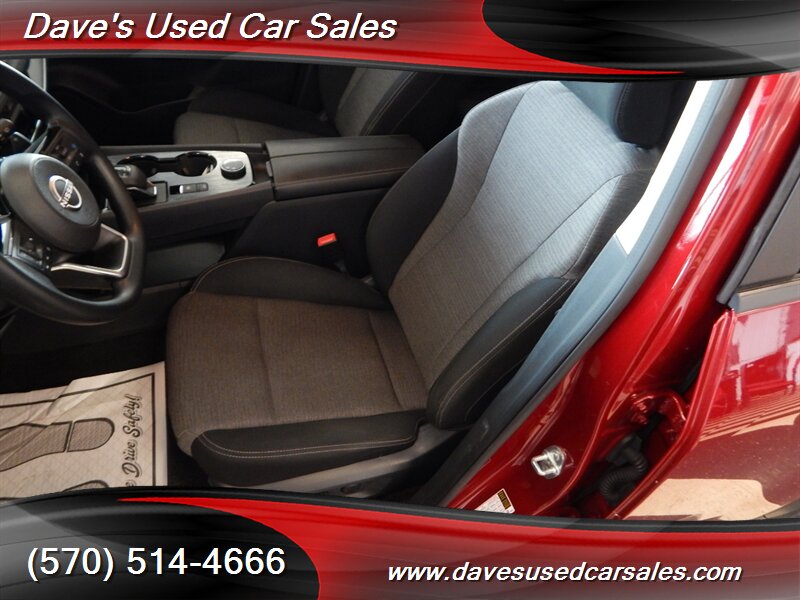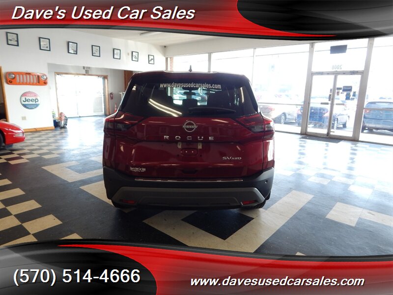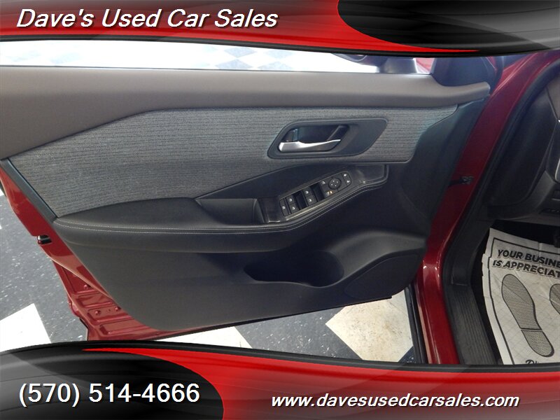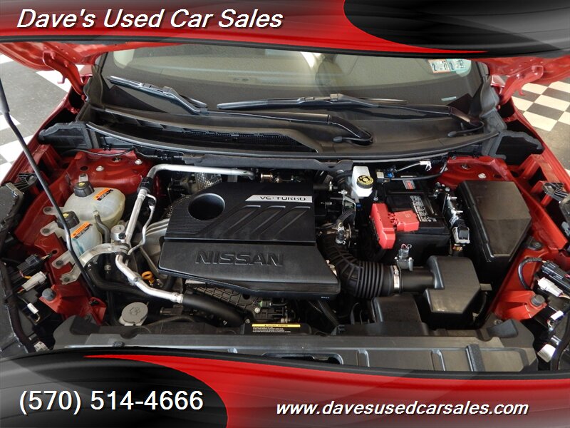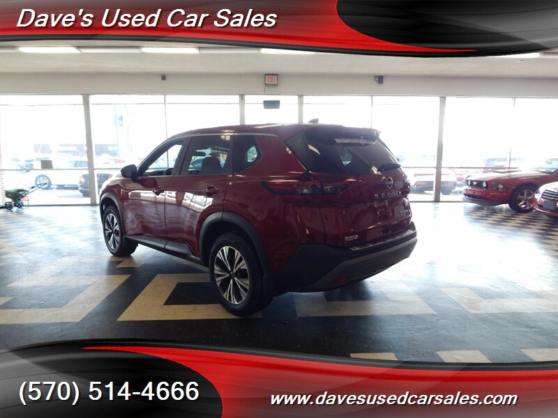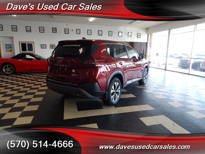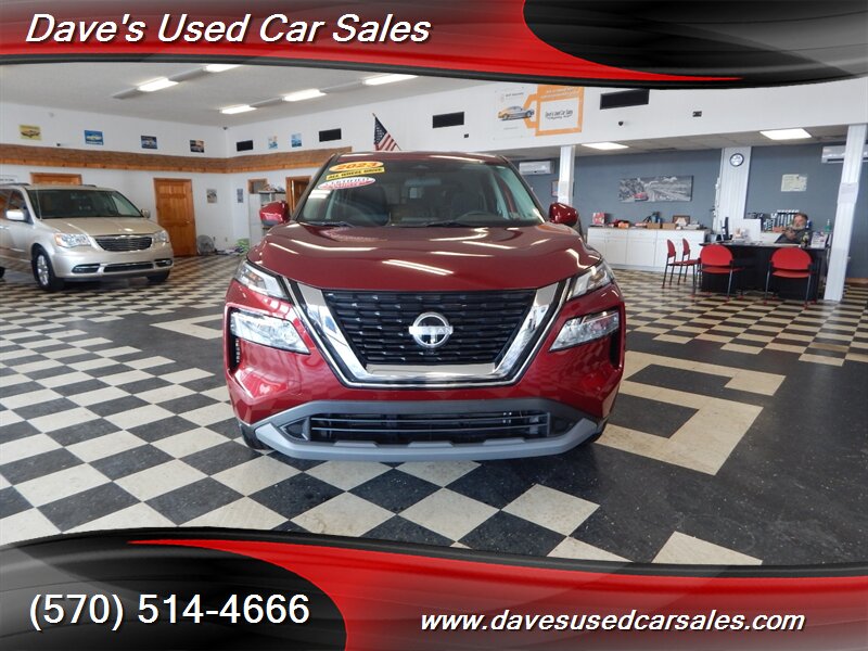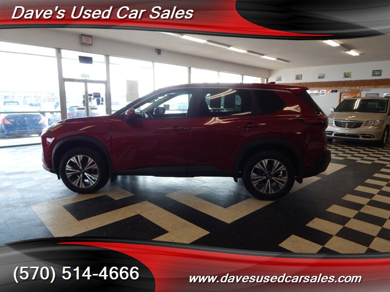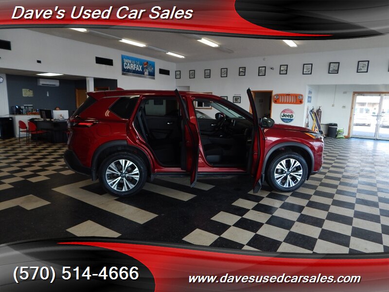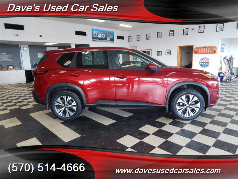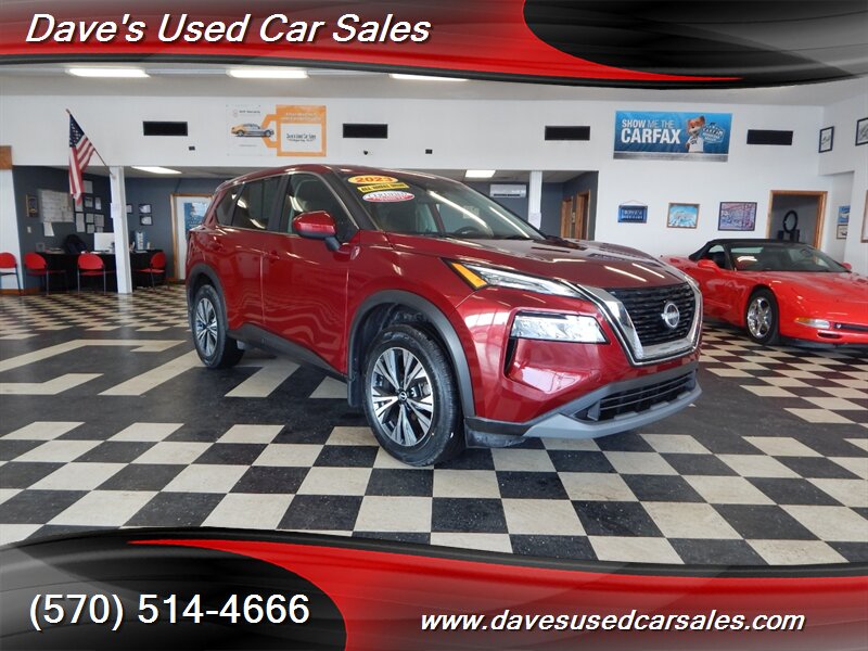 2023 Nissan Rogue SV — Scarlet Ember Tintcoat exterior with Charcoal interior. This Rogue is powered by the 1.5L DIG-T turbocharged I3 producing 201 hp and 225 lb-ft of torque, paired with Nissan’s Xtronic CVT for smooth acceleration and efficient cruising. EPA ratings for this vehicle are approximately 28 MPG city and 35 MPG highway. This example has strong ownership history with under 32,000 miles (averaging less than 8,000 miles per year), has had one owner, has never been smoked in, and has been inspected and fully detailed by the dealer. The paint presents with a glossy finish and the vehicle is in excellent overall condition.