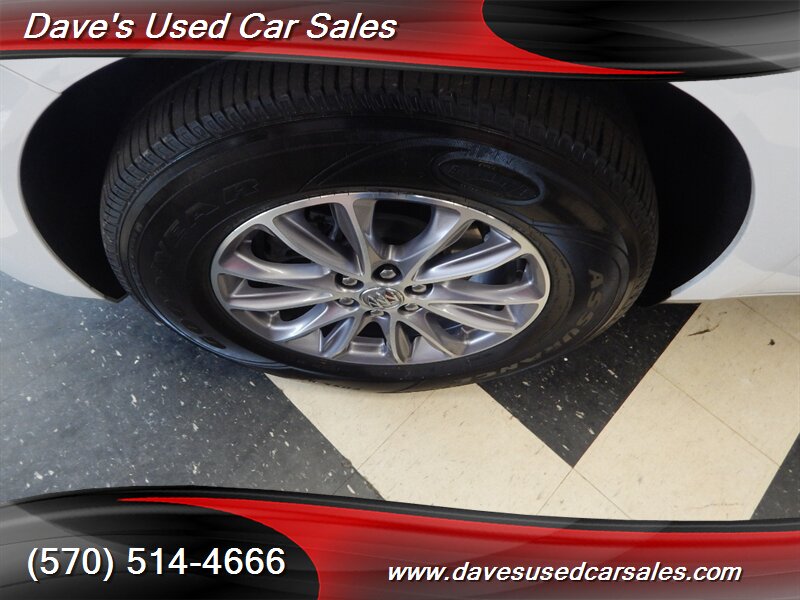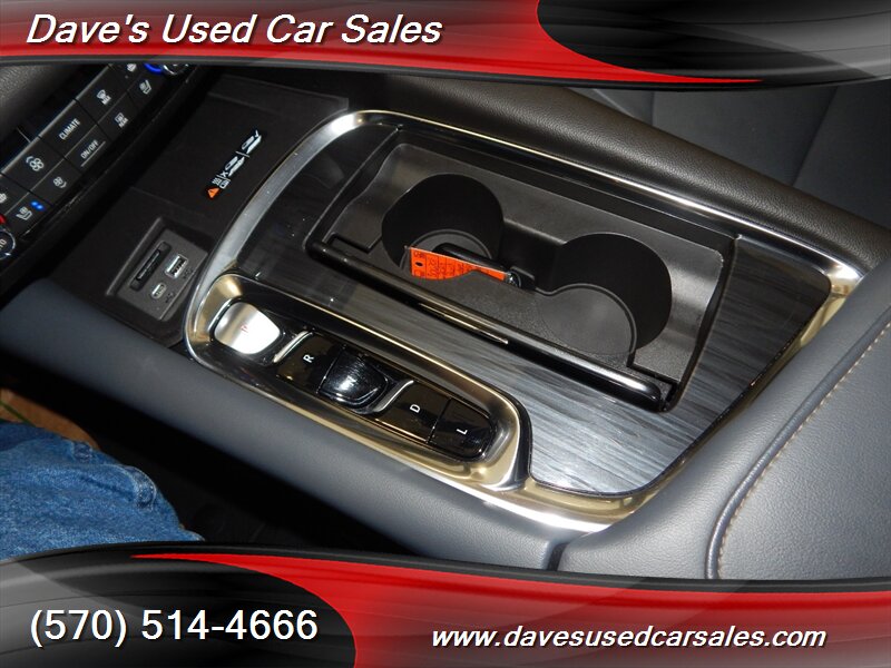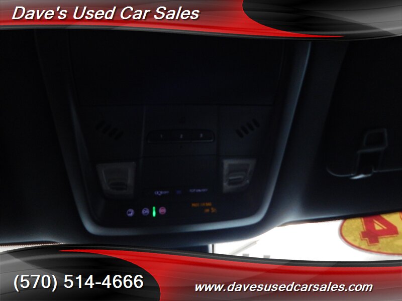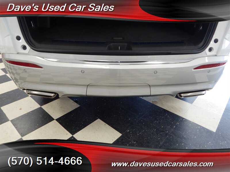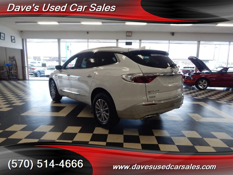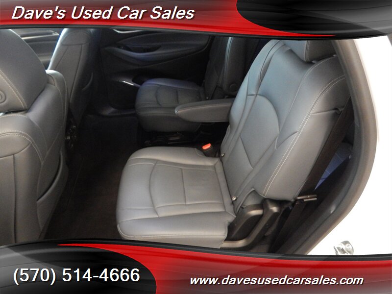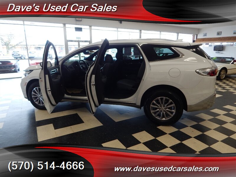 The exterior of this Enclave Premium is finished in an eye-catching White Frost Tricoat, a color that exudes sophistication and elegance while enhancing the vehicle's overall aesthetic appeal. The glossy paint not only adds to the vehicle's visual allure but also signifies the care taken to maintain its pristine condition. The sleek lines and sculpted body of the Enclave contribute to its aerodynamic profile, while the bold front grille and signature LED headlights provide a commanding presence on the road.