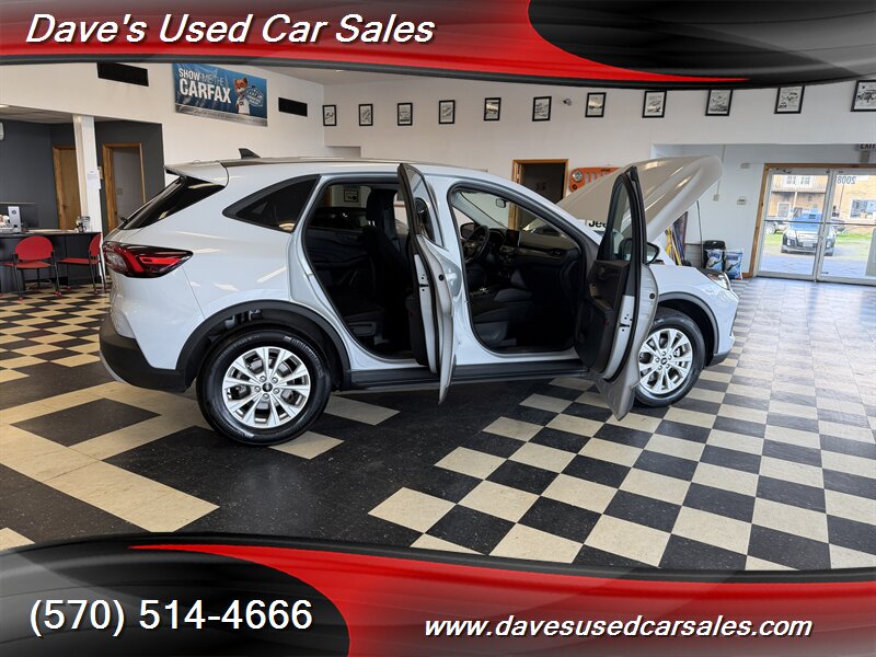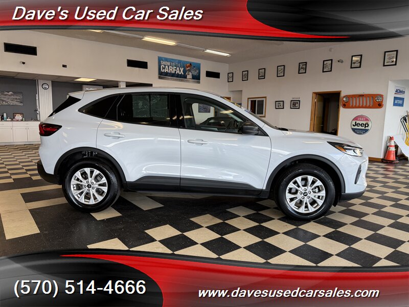 2025 Ford Escape Active — Space Silver exterior with Ebony interior. Powered by the EcoBoost 1.5L Turbo I3 (180 hp / 199 lb-ft), paired with an automatic transmission and rated at 26 MPG city / 32 MPG highway. This Escape is in excellent overall condition with glossy paint, has been fully detailed, inspected by the dealer, and comes with a clean CARFAX showing a single owner and no history of smoking.